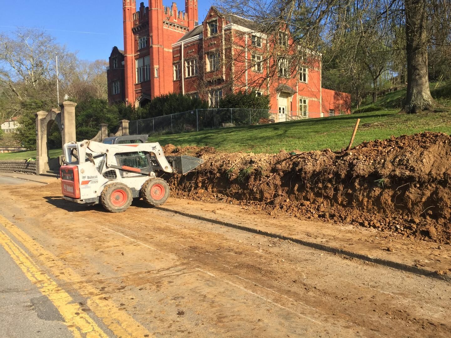 Alumni had a concern that the mostly dead tree next to the Arch might someday fall and take the Arch with it. The University had the tree greatly trimmed so it wasn’t a threat but the remaining trunk was unsightly and the tree could continue to grow roots which could affect the new wall. The Black Walnut tree at the other end was a danger when the walnuts dropped on pedestrians and cars and also posed a threat to the new wall. With Alumni funding we had both trees removed this year. We still have to cut the stumps down so the lawn will look good
